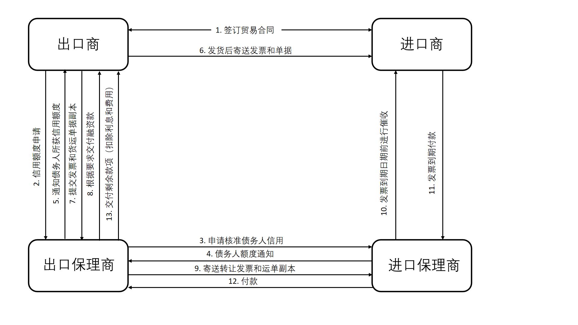 本司为您负责应收账款催收和销售分户账管理,不仅让您省却财务管理的人力和物力,帮您及时了解国外买方的资信状况变化,控制销售风险;更能助您消除与不同国家买方之间交易的语言、文化和法律障碍。